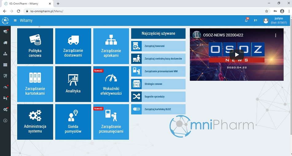5. Po ponownym zalogowaniu wyświetlona zostanie strona główna systemu KS-OmniPharm, np.: