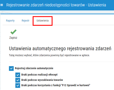 Rys.1. Ustawienia automatycznego rejestrowania zdarzeń