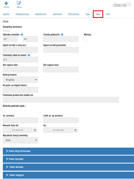 Rys. 8. Przykładowa karta towaru, zakładka "Inne"