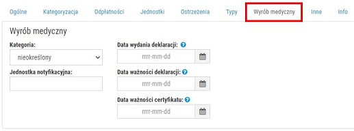 Rys. 7. Przykładowa karta towaru, zakładka "Wyrób medyczny"