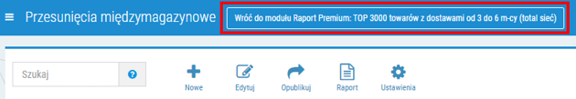Jak utworzyć przesunięcie MM z poziomu raportu KPI Premium TOP 3000 towarów z dostawami od 3 do 6 miesięcy (total sieć)?