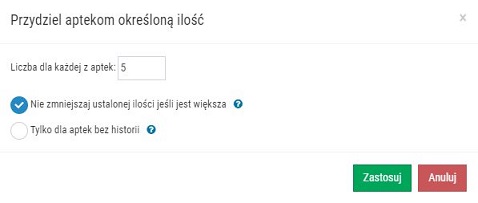Opcja "Przydziel aptekom określoną ilość towaru"