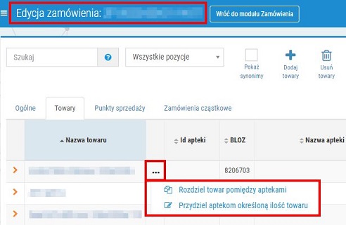 Dzięki zastosowaniu funkcjonalności użytkownik może wskazać wymaganą ilość do zamówienia danego towaru na etapie edycji zamówienia. Na tej podstawie wyliczone zostaną dodatkowe ilości, które zostaną rozdzielone między aptekami, zgodnie z ustawieniami określonymi przez użytkownika. Skorzystanie z opcji może być szczególnie przydatne, gdy zaistnieje potrzeba zakupu większej ilości sumarycznej danego towaru niż wyliczono na podstawie bieżącej sprzedaży.