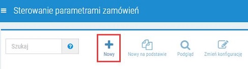 1. Aby utworzyć nowe zestawienie, należy wybrać Nowy z poziomu okna Sterowanie parametrami zamówień. Po wybraniu opcji wyświetlony zostanie kreator, który w pięciu krokach opisuje proces definiowania parametrów zamówień centralnych w aptece.