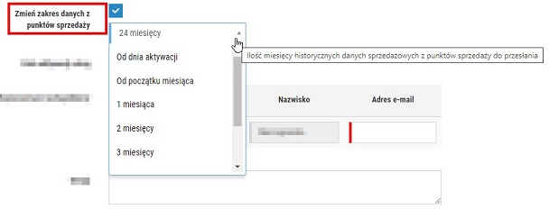 Rys. 2. Możliwość włączenia/wyłączenia przekazywania danych oraz określenia ilości miesięcy historycznych danych sprzedażowych do przesłania