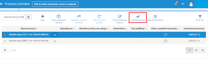 8. W ten sposób należy zatwierdzić wszystkie przeceny, które mają zostać opublikowane w aptekach.