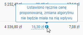 Cenę proponowaną można również wprowadzić ręcznie, wystarczy kliknąć na daną wartość w kolumnie Cena proponowana, wprowadzić cenę i zatwierdzić przyciskiem