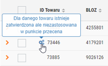 Jeżeli dla danego towaru i apteki zdefiniowano już przecenę, która została zatwierdzona, ale nie została jeszcze zastosowana w aptece, to takie pozycje będą oznaczone ikoną