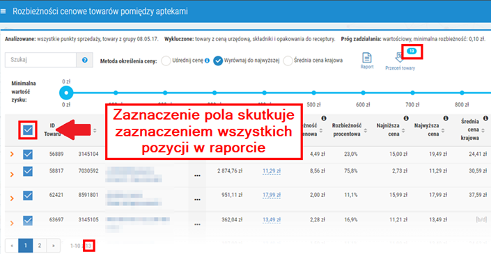 Rys. 6. Przykładowy raport „Rozbieżności cenowe towarów pomiędzy aptekami”