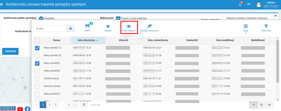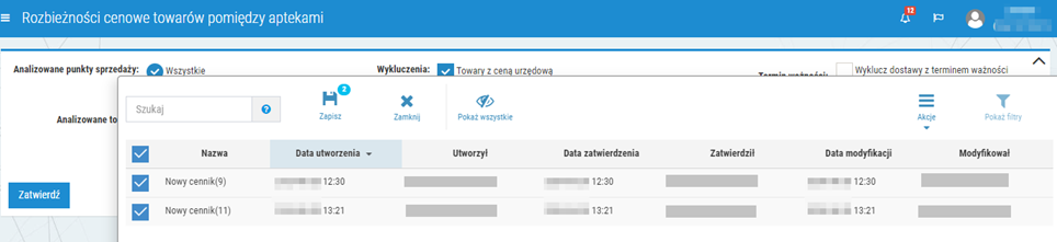 11. W ten sposób należy zatwierdzić wszystkie przeceny, które mają zostać opublikowane w aptekach.