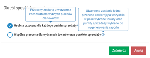 - Osobna przecena dla każdego punktu sprzedaży – (opcja domyślnie zaznaczona) utworzona zostanie osobna przecena dla każdej wskazanej apteki.