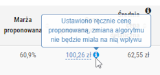 Cenę proponowaną można również wprowadzić ręcznie, wystarczy kliknąć na daną wartość w kolumnie Cena proponowana, wprowadzić cenę i zatwierdzić przyciskiem