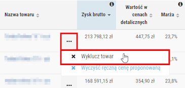 Rys. 11. Możliwość wykluczenia towaru z poziomu raportu