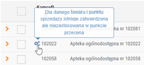 Jeżeli dla danego towaru i apteki zdefiniowano już przecenę, która została zatwierdzona, ale nie została jeszcze zastosowana w aptece, to takie pozycje będą oznaczone ikoną
