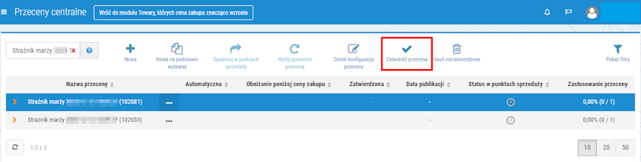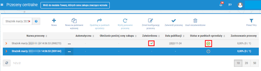8. W ten sposób należy zatwierdzić wszystkie przeceny, które mają zostać opublikowane w aptekach.