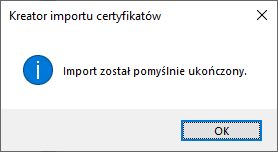 6. Certyfikat zostanie zaimportowany po kliknięciu przycisku Zakończ: