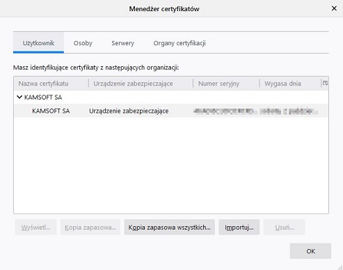 Rys. 3. Menedżer certyfikatów, import certyfikatu
