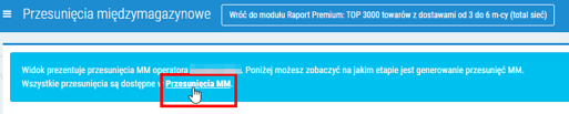 Jak utworzyć przesunięcie MM z poziomu raportu KPI Premium TOP 3000 towarów z dostawami od 3 do 6 miesięcy (total sieć)?